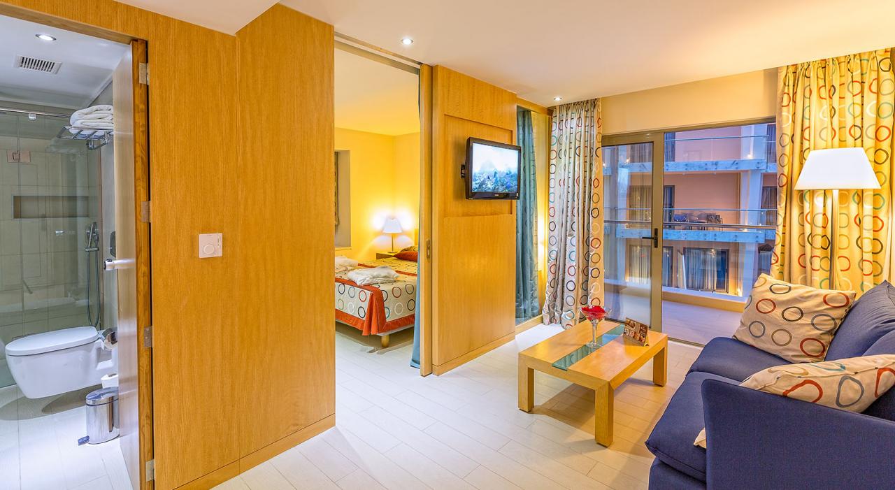 Executive Suite: kb. 37 m2 alapterületű, kertre vagy tengerre néző kilátású szoba, melyben a hálószobát és a nappali részt tolóajtó választja el.
