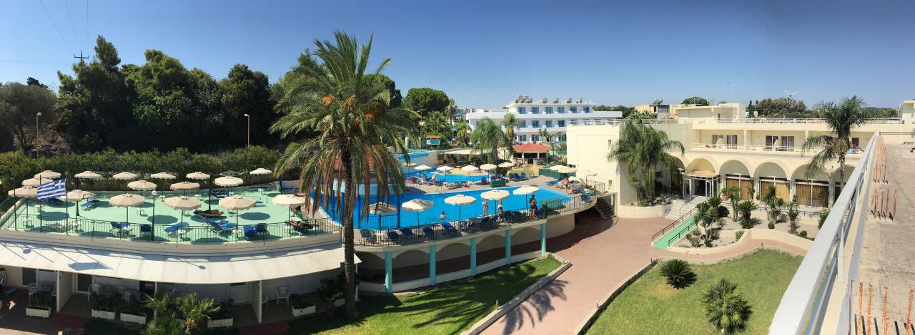 A szálloda a kavicsos tengerparttól kb. 100 méterre, a Diagoras nemzetközi repülőtértől kb. 19 km-re, Rodosz városától és Faliraki városától pedig egyaránt 6 km-re fekszik. Buszmegálló és bankautomata kb. 50 méterre, gyógyszertár pedig kb. 100 méteres távolságra található. Kalithea központja kb. 2 km-re helyezkedik el.
